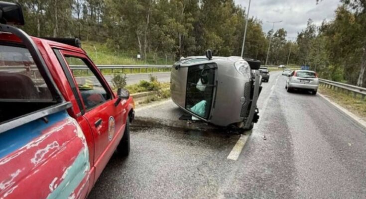 Τροχαίο ατύχημα στην Αρτέμιδα: Αναποδογύρισε αυτοκίνητο στη μέση του δρόμου